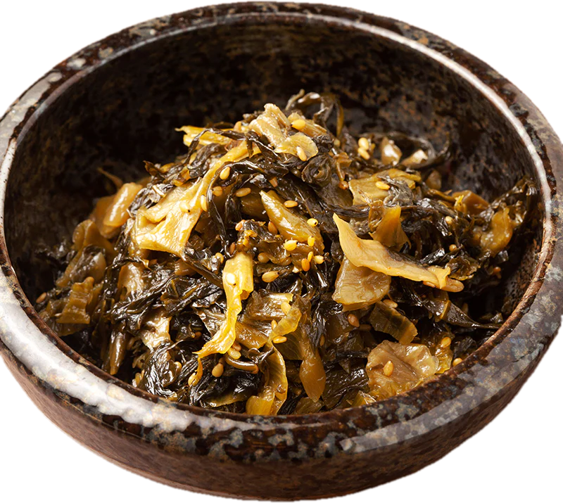 Tangy takana pickle salad, a refreshing mix of pickled mustard greens for a zesty flavor burst.